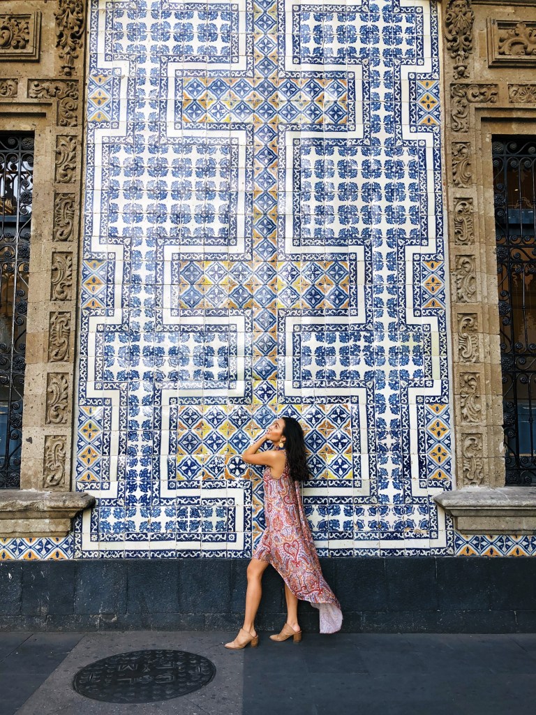 Amid all the colors of Mexico there were some really impressive patterns everywhere as well… and again I rose up to the challenge with some prints of my own. This asymmetrical skirt from The Kooples was unexpectedly one of my favorite clothing items from that trip – I don’t always wear darker stuff, but the gold accents and intricate pattern on that skirt still made it a bright standout item. The silk high-low dress from the Finders Keepers not only had a beautiful scarf tie-up in the back, it was also covered in a classic boho pattern that matched with the House of Tiles pattern almost perfectly. Both these items flowed in the wind and created some picture perfect moments.