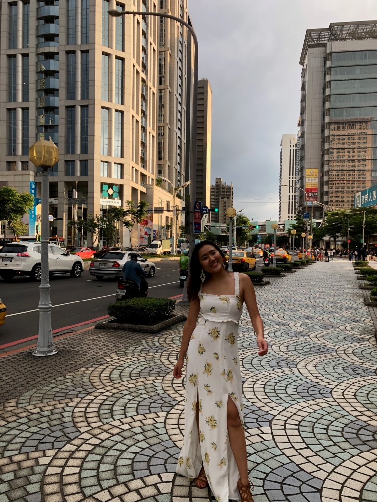 White floral maxi dress, pictured near Banqiao New Taipei City Hall in Taiwan: Show Me Your Mumu